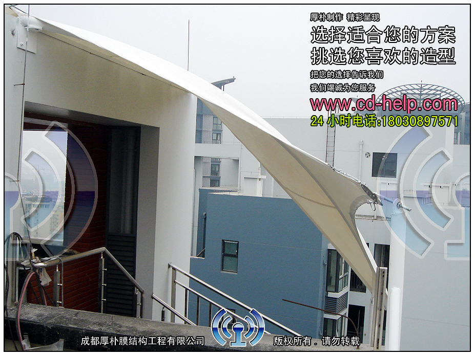 ---1、造型能力强,膜布是一种软性材料,它虽然柔软,但是强度远远超过了阳关板等一系列遮阳材料。所以它是很多设计师做遮阳结构设计的首选材料。