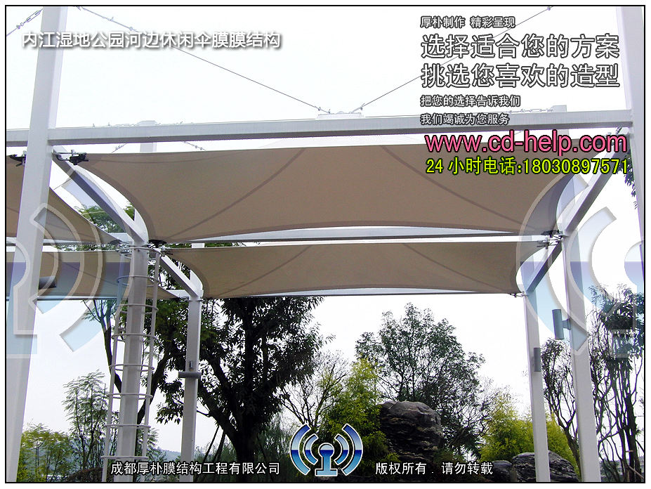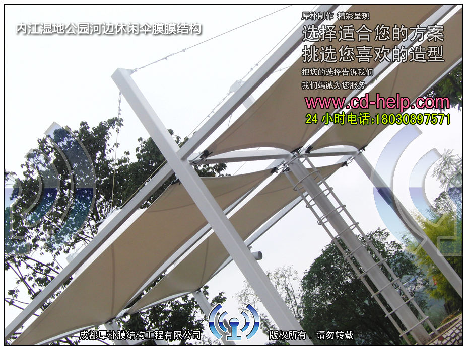 -工程名称 内江湿地公园河边休闲伞膜膜结构