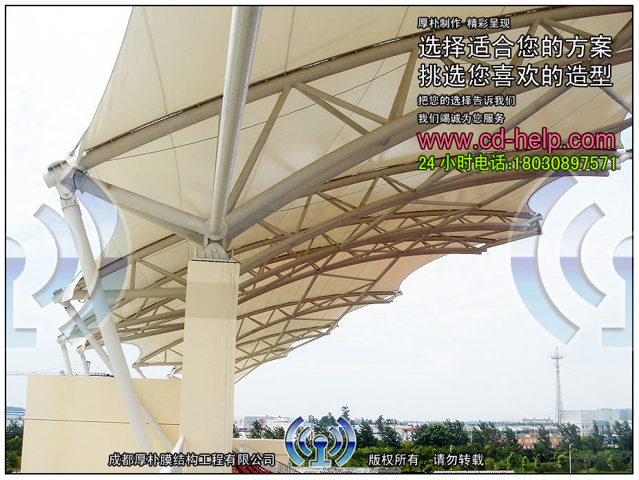 ---你们在选择膜结构公司的时候一定要全方面去考虑。不光是价格上面去考察,最主要是要从公司制作出来的产品质量究竟如何?公司是否是正规的企业?公司的工程业绩是否具有真实性?这些都要靠你们去分辨和考察。